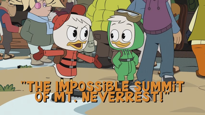 Scrooge, the boys, Webby, and Launchpad spend their Christmas attempting to climb the “unclimbable” Mt. Neverrest, a task Scrooge failed at 75 years ago due to his treacherous guide, George Mallardy. Along the way, Launchpad is convinced by a salesman that he is dying of “ice-fever”, Webby and Dewey try to accomplish the perfect sledding experience, Huey attempts to discover Neverrest’s secret: wormholes, and Louie, figuring out that Launchpad was conned, pulls off his own scheme to trick the salesman into confessing the truth to a nearby village and expose him as a fraud.